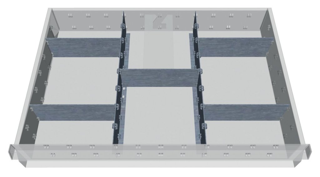 Schubladeneinsatz 168-139A, für Schubladenhöhe 100 mm, für Werkstattwagen Bedrunka+Hirth B x T 680 x 500 mm