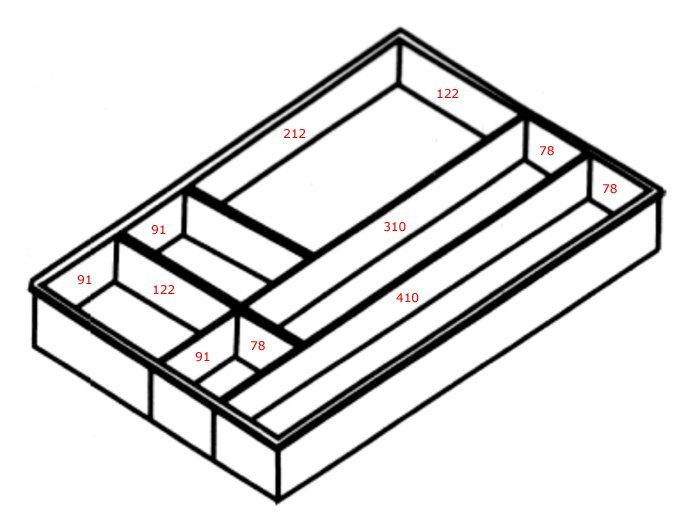 Schubladeneinsatz aus Kunststoff PIT 450, für Schubläden DIN A3, Schubladenhöhe 51 mm. vollständige Beschreibung und Parameter