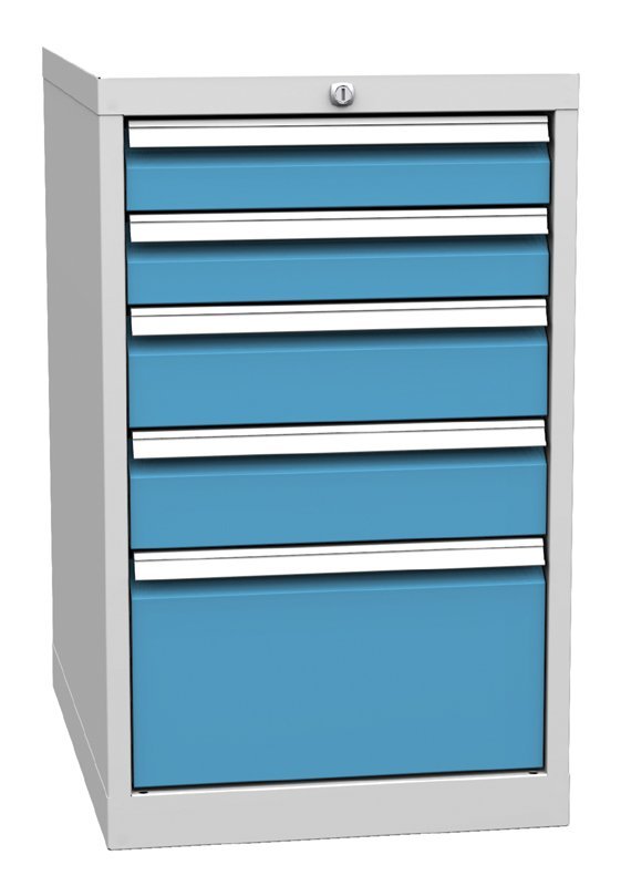 Schubladenschrank DPK 01B, B x H x T 500 x 810 x 700 mm. Korpusfarbe RAL 7035 Lichtgrau.