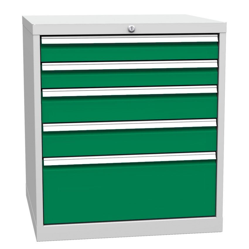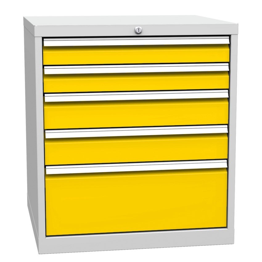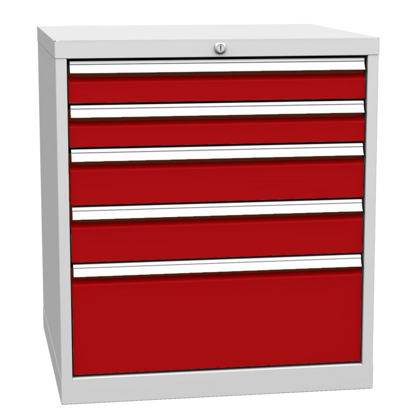 Schubladenschrank DPK 01A, B x H x T 500 x 810 x 700 mm. Korpusfarbe RAL 7035 Lichtgrau.