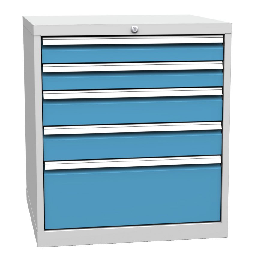 Schubladenschrank DPK 01B, B x H x T 500 x 810 x 700 mm. Korpusfarbe RAL 7035 Lichtgrau.