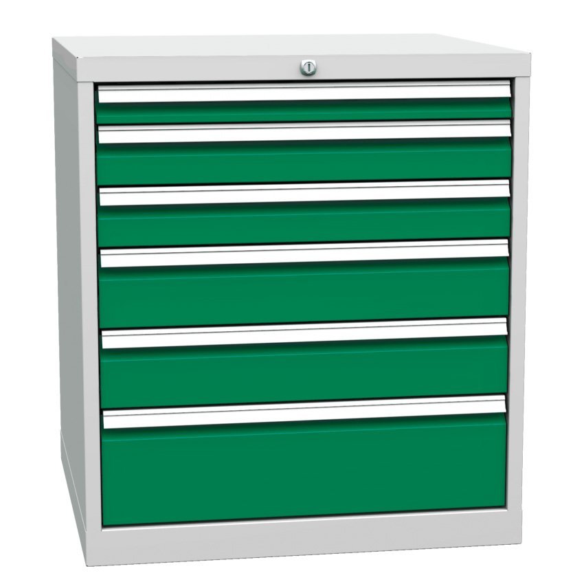 Schubladenschrank DPK 01A, B x H x T 500 x 810 x 700 mm. Korpusfarbe RAL 7035 Lichtgrau.