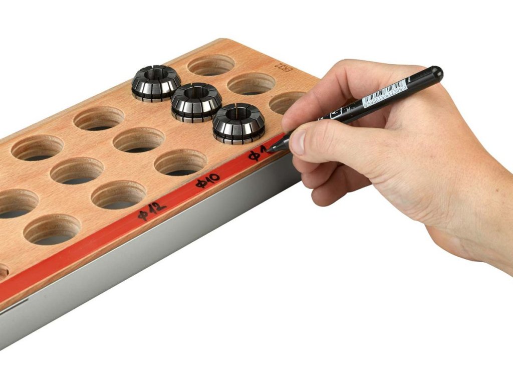 Ein einziges, originelles System regelt die Aufbewahrung von Zerspanungs- sowie Stanzwerkzeugen. Die Aufbewahrung der Zerspanungswerkzeuge und der Stanzwerkzeuge unterscheidet sich lediglich durch die Art der Werkzeughalterungen, die Aufbewahrungs- und Transportmittel sind identisch.
