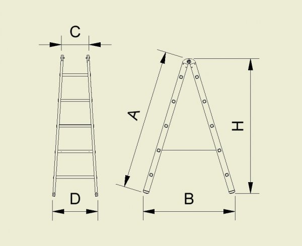 Sprossenstehleiter Forte 8907, Sprossenzahl 2x7, max. Höhe 2030 mm, Sprossenbreite 308-571 mm