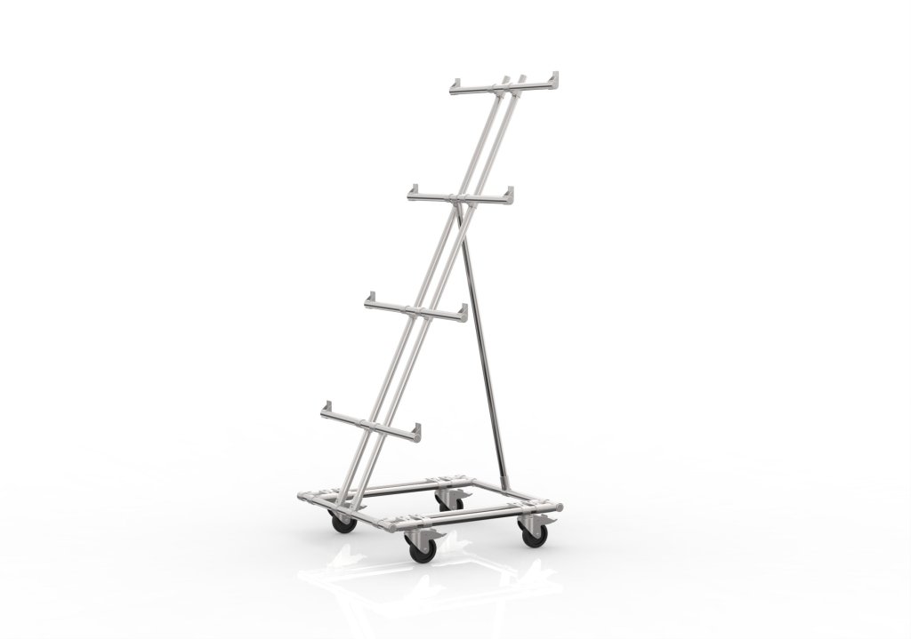 Der Spulenwagen ist ein Wagentyp, der für die Lagerung und den Transport großer Spulen mit Draht und Kabeln vorgesehen ist. Die Räder sind mit Bremsen ausgestattet, die eine ungewollte Bewegung des Wagens bei Nichtbenutzung verhindern. Die Farbe der Konstruktion ist wählbar, abhängig von den verfügbaren Rohren auf der Website.