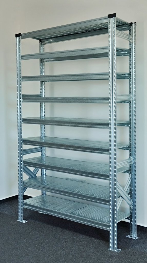 Steckregal, H x B x T 1972 x 1124 x 410 mm, 9x Fachboden, Fachboden-Tragkraft 125 kg, Gesamttragkraft 1100 kg, 2 Jahre Garantie. vollständige Beschreibung und Parameter