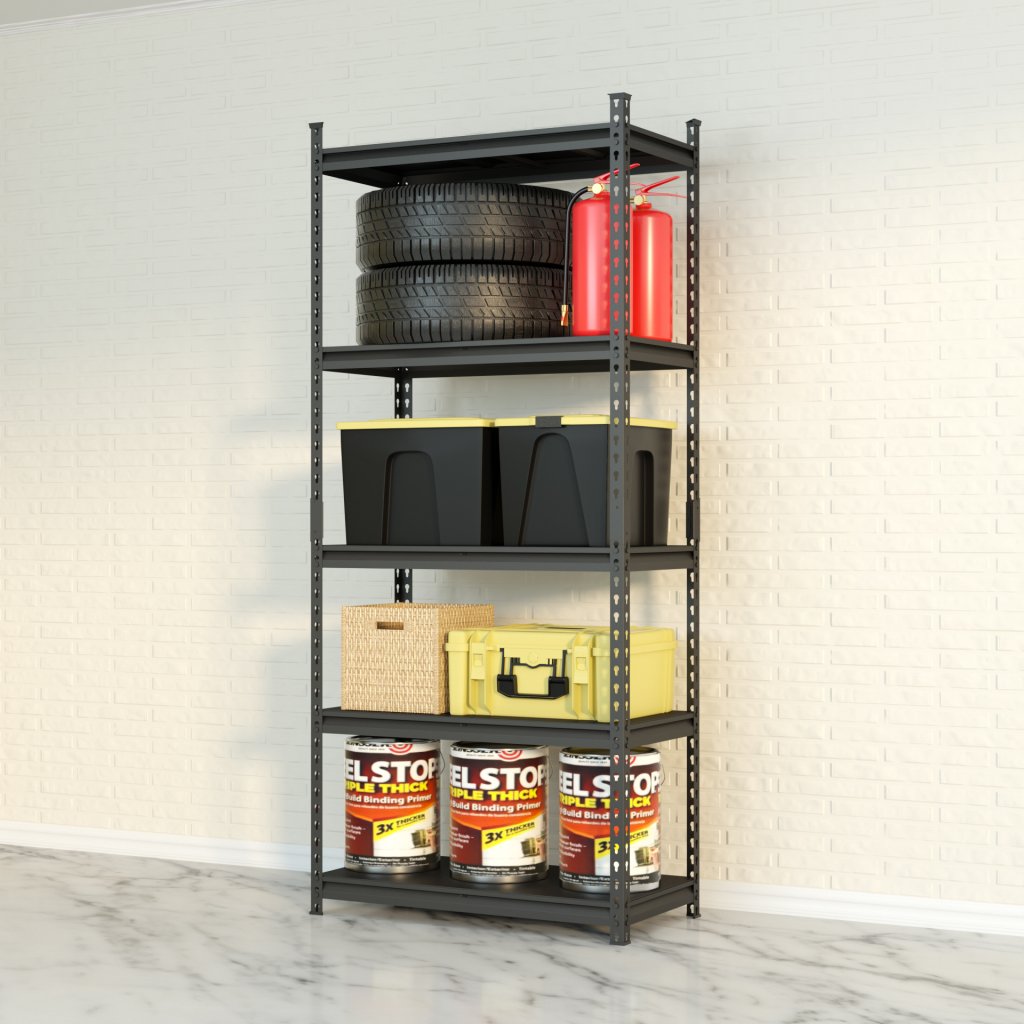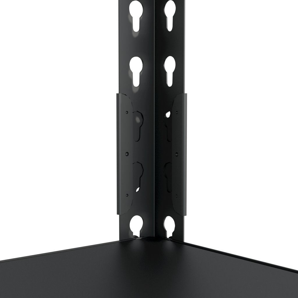 Universelles, schraubenloses Ganzmetallregal, geeignet für Werkstätten, Lager, Büros, Garagen oder Archive. Hergestellt aus hochwertigem Stahlblech, oberflächenbehandelt mit schwarzer Pulverbeschichtung. 5 verstellbare Fachböden mit Verstärkung. Tragkraft 175 kg. Fachbodenmaße (H x B x T): 1830 x 800 x 500 mm. Lieferung zerlegt.