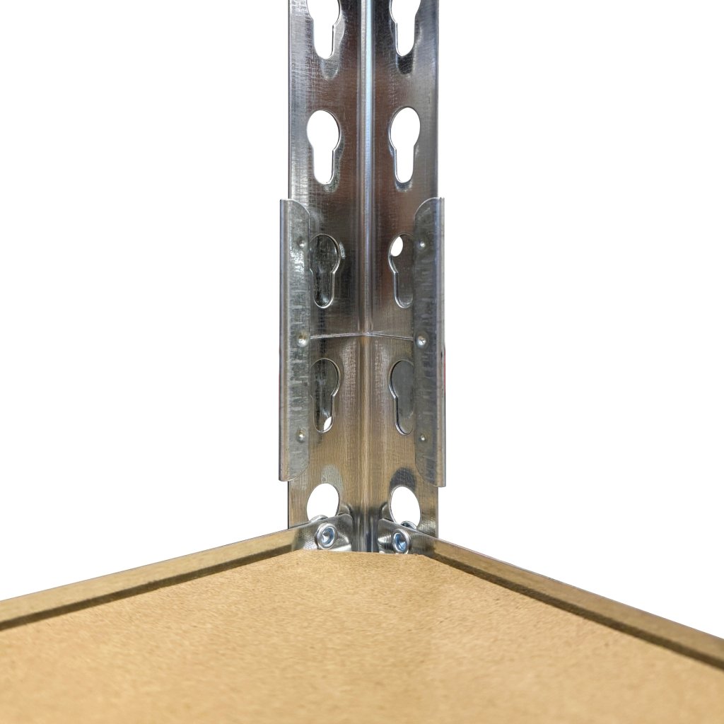 Universelles, schraubenloses metallregal, geeignet für Werkstätten, Lager, Büros, Garagen oder Archive. Hergestellt aus hochwertigem Stahlblech mit einer verzinkten Oberflächenbehandlung für erhöhte Korrosionsbeständigkeit. 5 verstellbare MDF Fachböden mit Verstärkung. Tragkraft 175 kg. Fachbodenmaße (H x B x T): 1830 x 800 x 400 mm. Lieferung zerlegt.