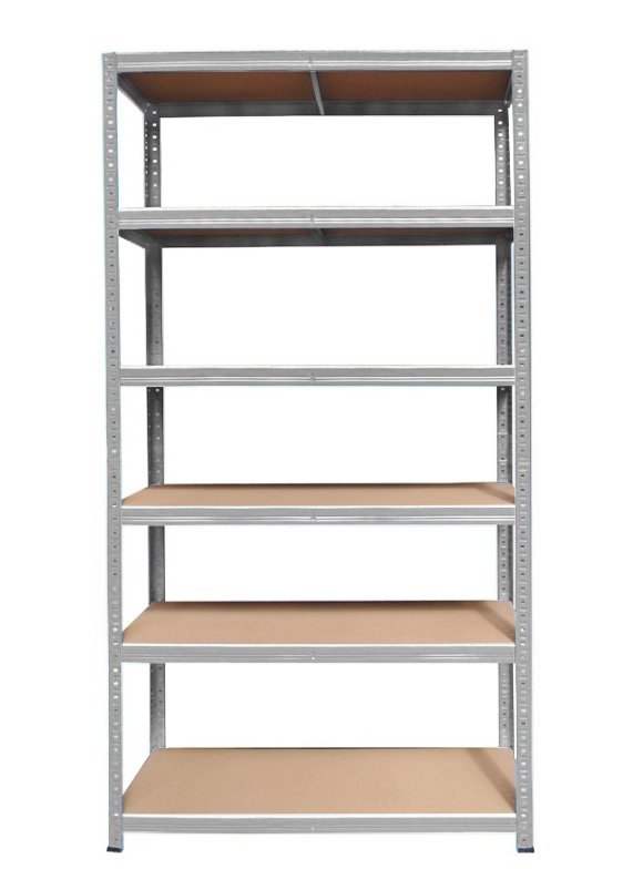 Steckregal N485L3, aus Stahlblech, pulverbeschichtet RAL 7035. 5xFachboden aus Spanplatte, Stärke 8 mm, höhenverstellbar im Raster von 100 mm, Fachboden-Tragkraft 260 kg. H x B x T 1770 x 900 x 450 mm. Demontiert geliefert.