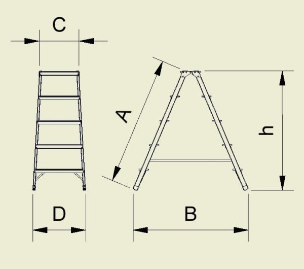 Stufenstehleiter Eurostyl 925, Stufenzahl 2x5, max. Höhe 1,03 m, Breite 342-461 mm vollständige Beschreibung und Parameter