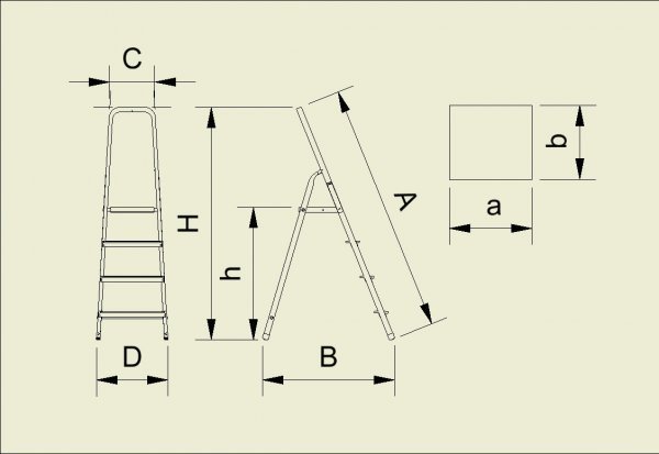 Stufenstehleiter Eurostyl 913, Stufenzahl 1x3, Plattformabmessung 264x 262 mm, max. Plattformhöhe 0,59m, Stufenbreite 280-407 mm vollständige Beschreibung und Parameter