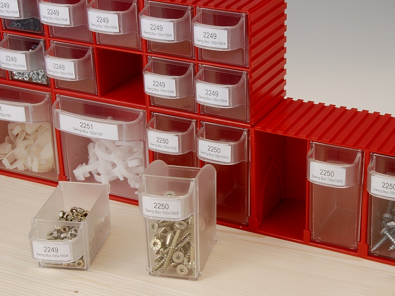 Swingbox Typ 2250 (102 x 102 x 94 mm), für Kleinteile, als Baukasten konzipiert