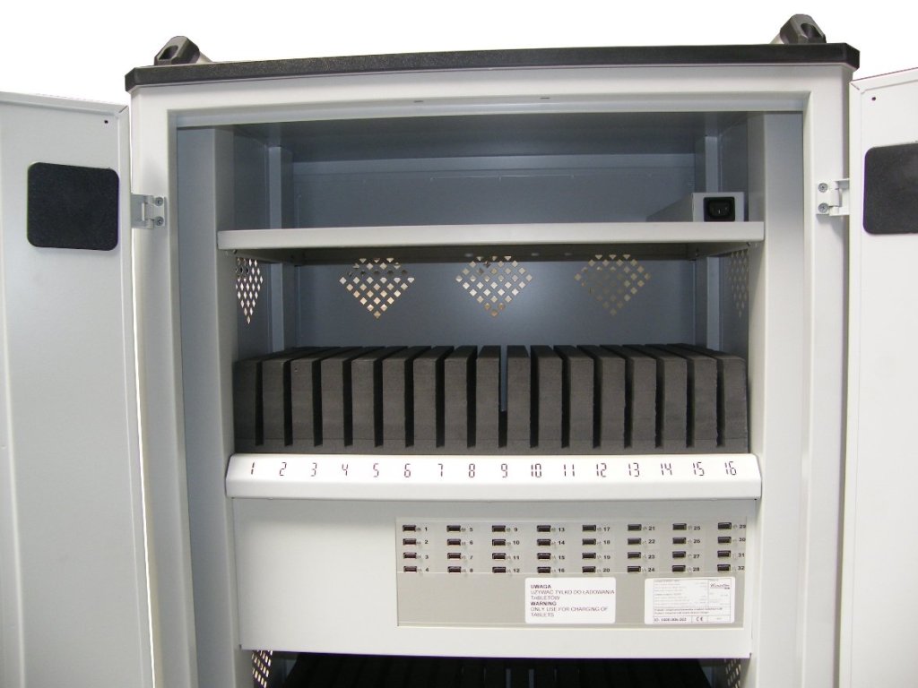 - kann bis zu 32 Tablets transportieren und die Akkus aufladen