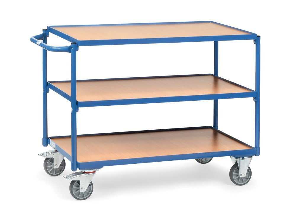 Tischwagen 2422, Tragkraft bis 600 kg, mit 3 Böden aus Holz, Ladefläche L x B 1000 x 700 mm, Höhe 1218 mm