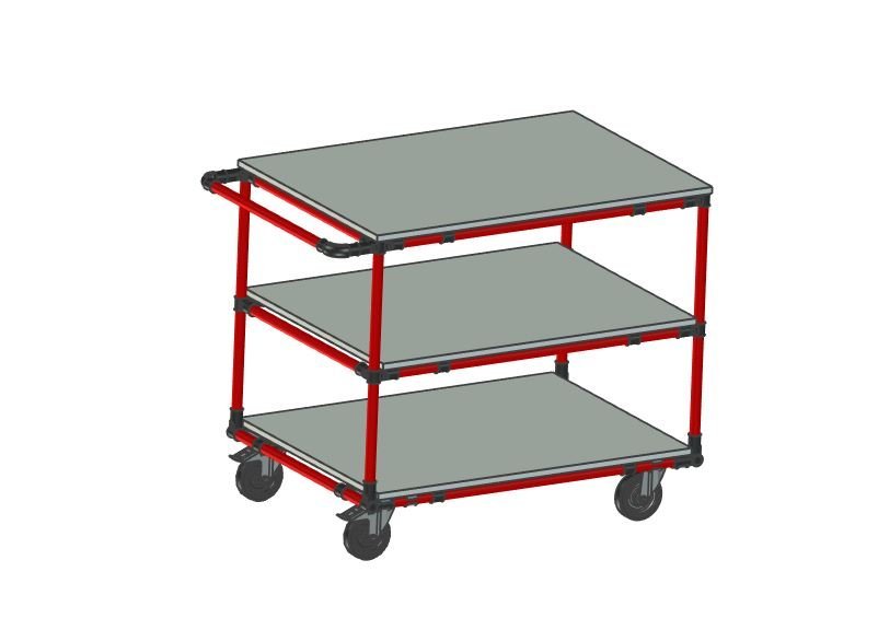 Der Transportwagen aus einem Rohrbausatzsystem ist ein praktischer Helfer, der sich für industrielle Bereiche, Lager und vollständige Beschreibung und Parameter