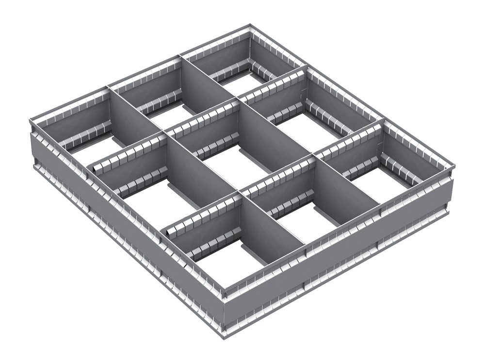 Trennelement für die Schubladen VND EPV 12B, Schubladenhöhe 120 und 150 mm. Dimension 95 x 538 x 357 mm.