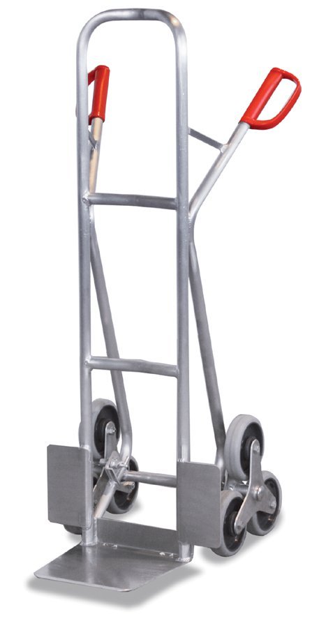 Treppenkarre Alu ap-1300, mit 2 dreiarmigen Radsternen, 1310 x 610 x 630 mm, Ladefläche 300 x 250 mm, Gewicht 14 kg, Traglast 200 kg, Vollgummibereifung Rad Đ 160 x 40 mm.