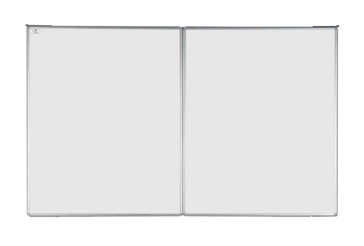 TRIPTYCH K 200x120 BBBBB, Klapptafel für Filzbeschriftung, weiß, magnetisch, H x B 120 x 200 cm, Schiebegestell AL oder Pylonen AL