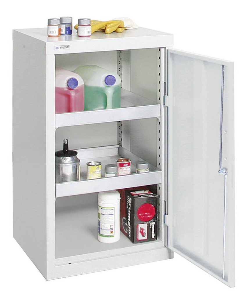 Umweltschrank Basic 2, H x B x T 900 x 1000 x 500 mm, Korpusfarbe RAL 7035 Lichtgrau, Türenfarben RAL 7035 Lichtgrau, RAL 5010 Enzianblau, RAL 1003 Signalgelb, 2x Auffangwanne/Volumen 22 l