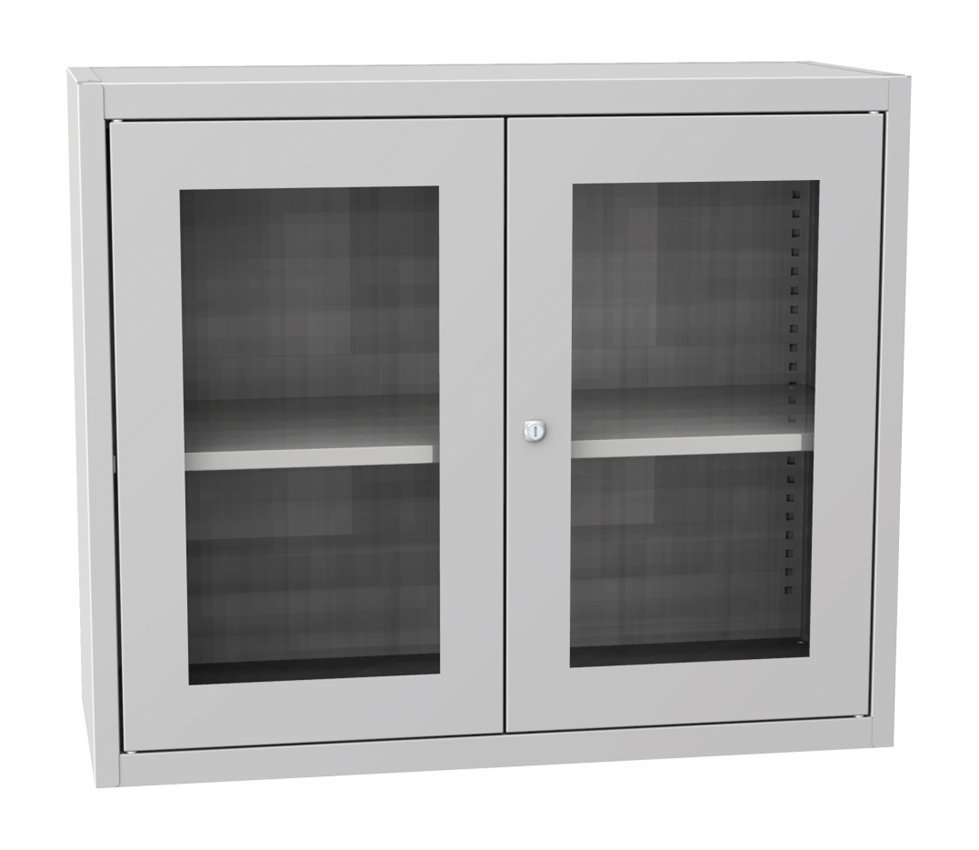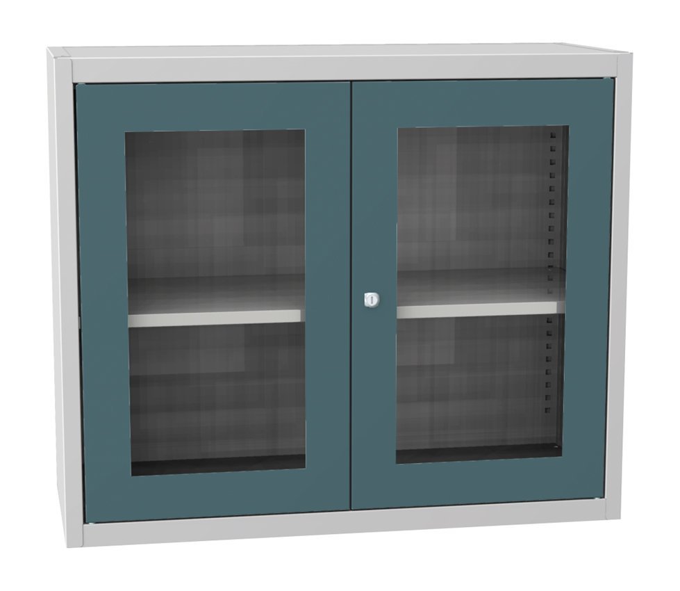 Universal-Schrank (Aufsatz), 2 Türen, 1 Fachboden, B x H x T 950 x 800 x 400 mm. Korpusfarbe RAL 7035 Lichtgrau.
