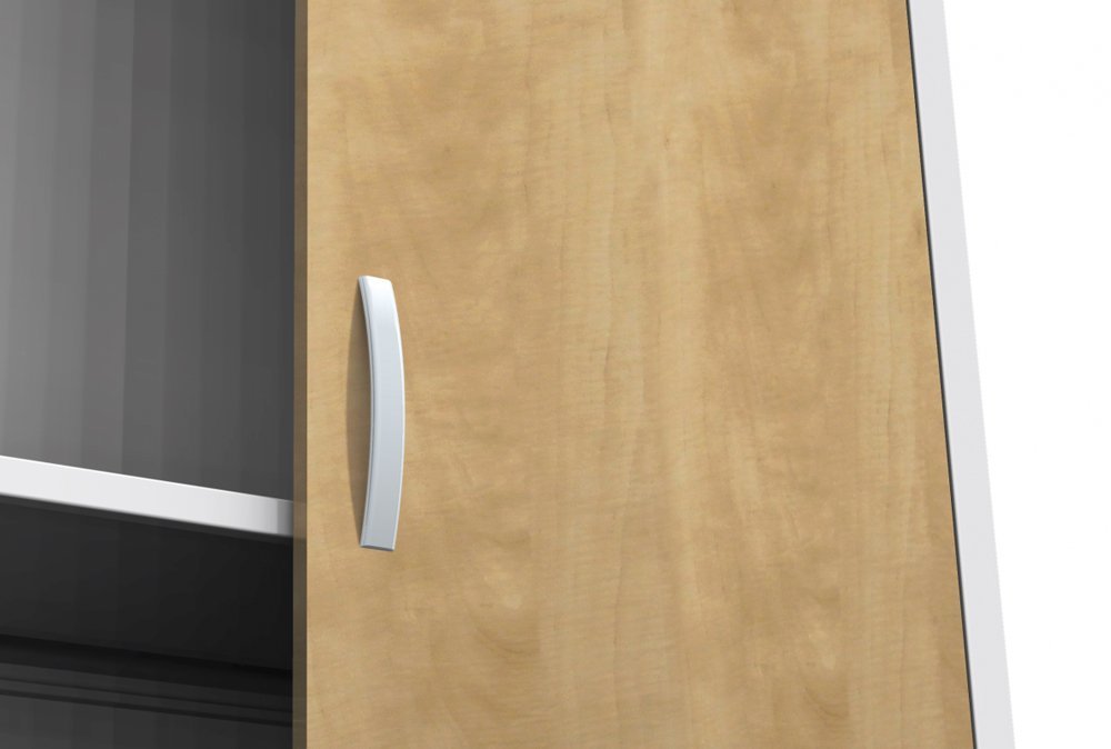 Universal-Schrank mit Sockel, 2 Türen, 2 Fachböden, B x H x T 800 x 1150 x 400 mm. Türen auch als verglaste oder laminierte im Holzdekor (Buche, Kirsche, Birke) lieferbar. Korpusfarben RAL 7035 Lichtgrau.