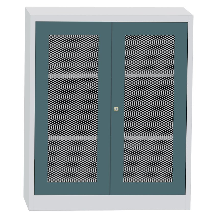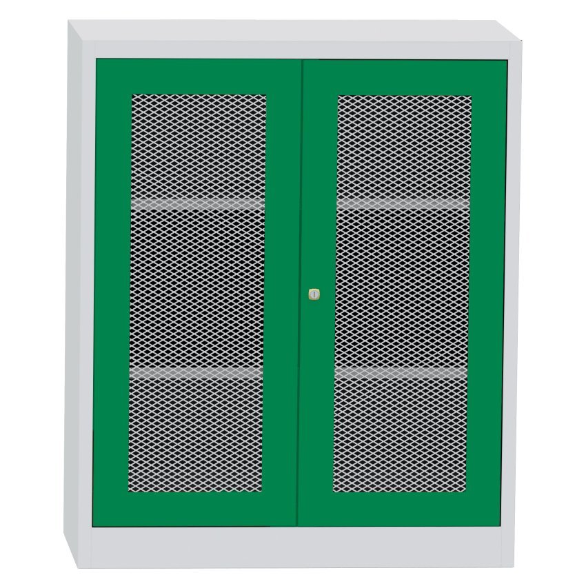Universal-Schrank, mit Sockel, B x H x T 800 x 1150 x 400 mm, Drahtgittertür. Korpusfarben RAL 7035 Lichtgrau.