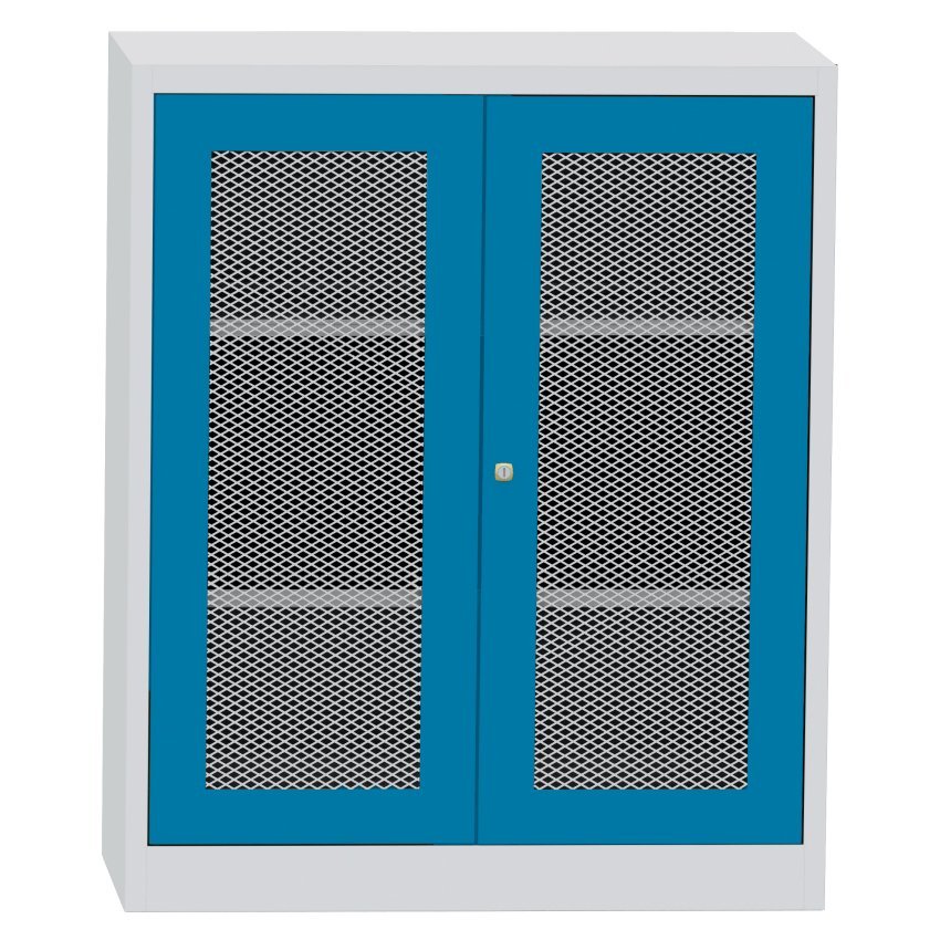 Universal-Schrank, mit Sockel, B x H x T 800 x 1150 x 400 mm, Drahtgittertür. Korpusfarben RAL 7035 Lichtgrau. vollständige Beschreibung und Parameter