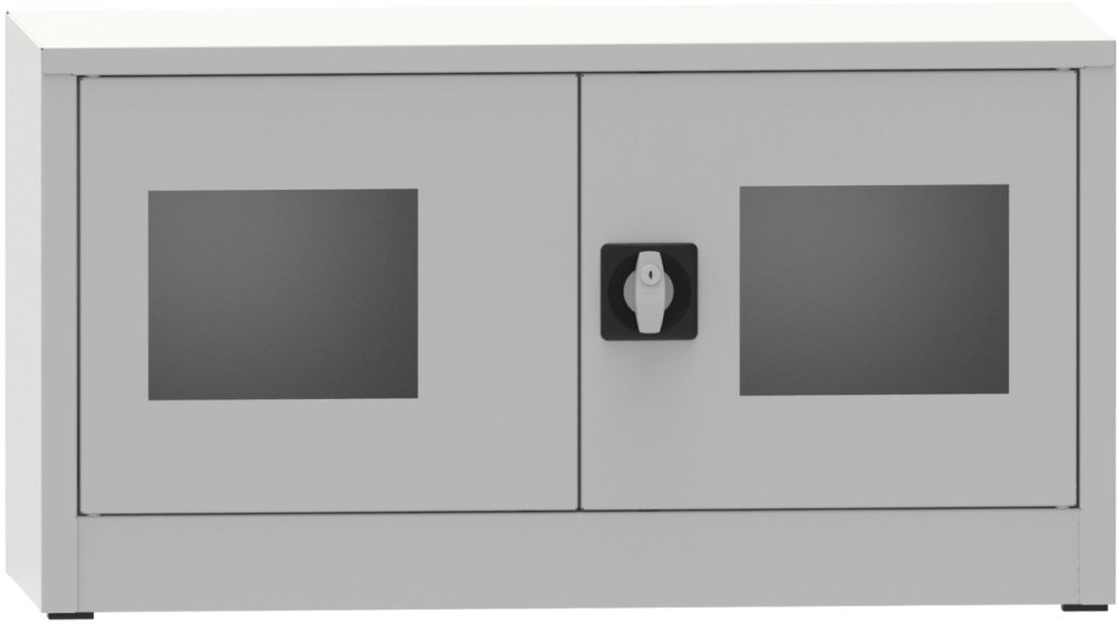 Schrank-Aufsatz, B x H x T 950 x 500 x 600 mm, Korpusfarbe RAL 7035 Lichtgrau, Türenfarben RAL 7035/RAL 5012. vollständige Beschreibung und Parameter