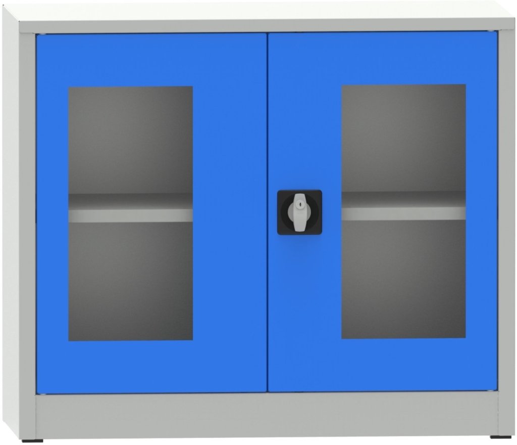 Universal - Schrank, B x H x T 950 x 800 x 500 mm, Korpusfarbe RAL 7035 Lichtgrau, Türenfarben RAL 7035/RAL 5012. vollständige Beschreibung und Parameter