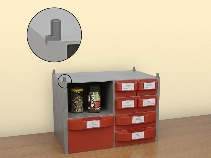 Verbindungselement I 2635 gehört zu den Bauelementen des VariBox-Systems und dient zum Zusammenbau der Einzelkombinationen. vollständige Beschreibung und Parameter