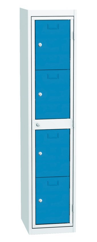 Wäscheausgabeschrank, für die Ausgabe reiner Berufskleidung, B x H x T 380 x 1770 x 460 mm. Zentralrahmen und 6 Ausgabekasten für die Bedienung mit Zylinderschloss. Korpusfarbe RAL 7035 Lichtgrau.