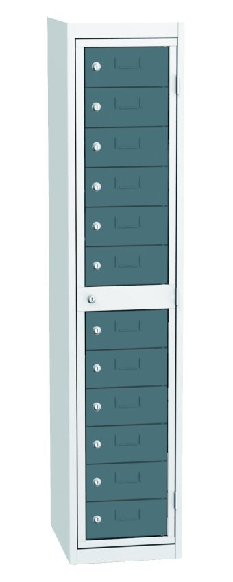 Wäscheausgabeschrank, H x B x T 1770 x 380 x 460 mm. Korpusfarbe RAL 7035 Lichtgrau.