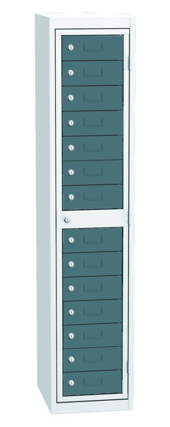 Wäscheausgabeschrank, H x B x T 1770 x 380 x 460 mm. Korpusfarben RAL 7035 Lichtgrau.