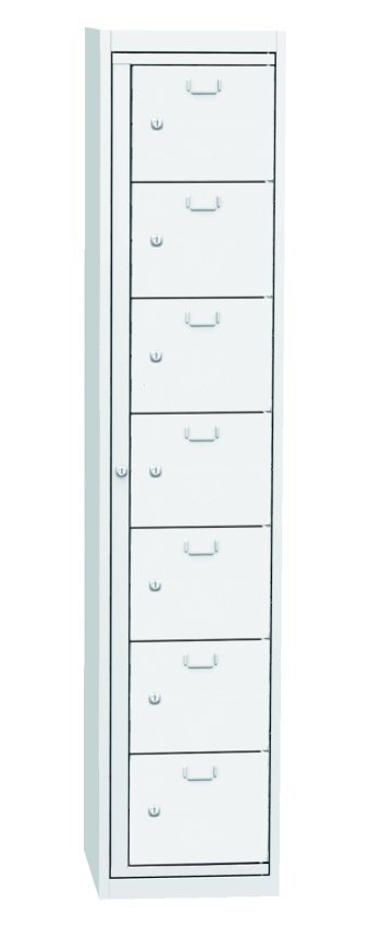 Wäscheausgabeschrank, H x B x T 1770 x 380 x 460 mm. Korpusfarben RAL 7035 Lichtgrau.