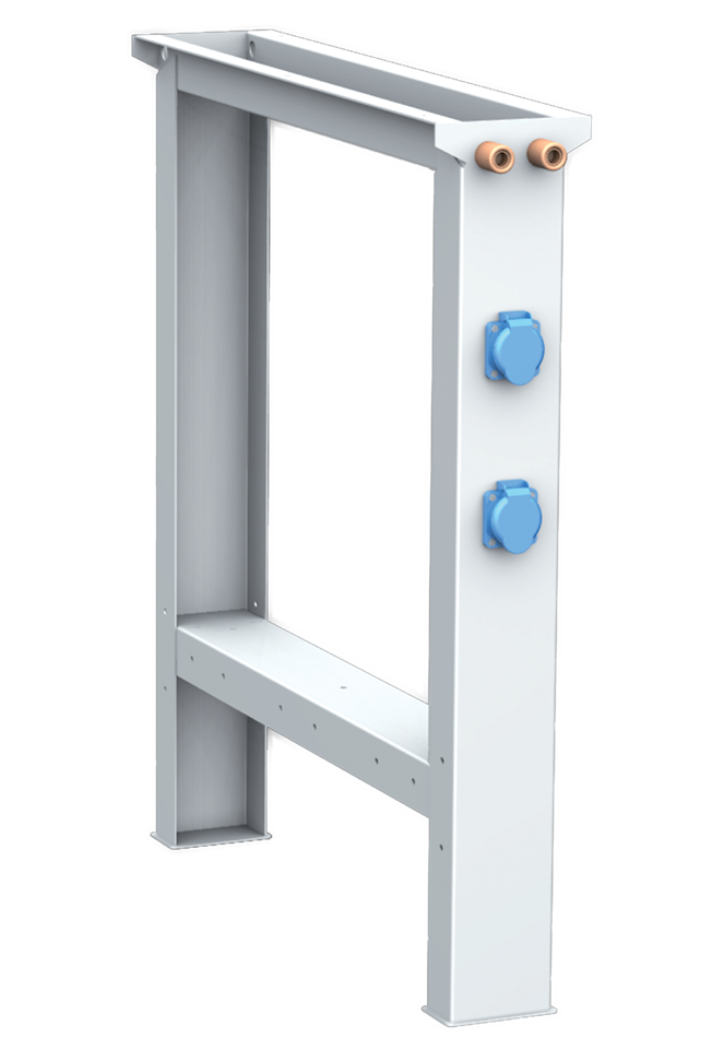 Werkbank-Fußgestell mit zwei Steckdosen 230V / 16A und mit zwei Schellkupplung für Luftanschluss. Höhe 810 mm, RAL 7035 Lichtgrau. vollständige Beschreibung und Parameter