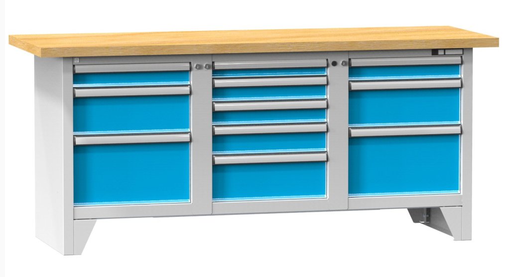 Werkbank, Gehäuse B x H x T 1796 x 840 x 600 mm, Arbeitsplatte Buchen-Leimholz o. Multiplex B x H x T 2000 x 700 x 40 mm vollständige Beschreibung und Parameter