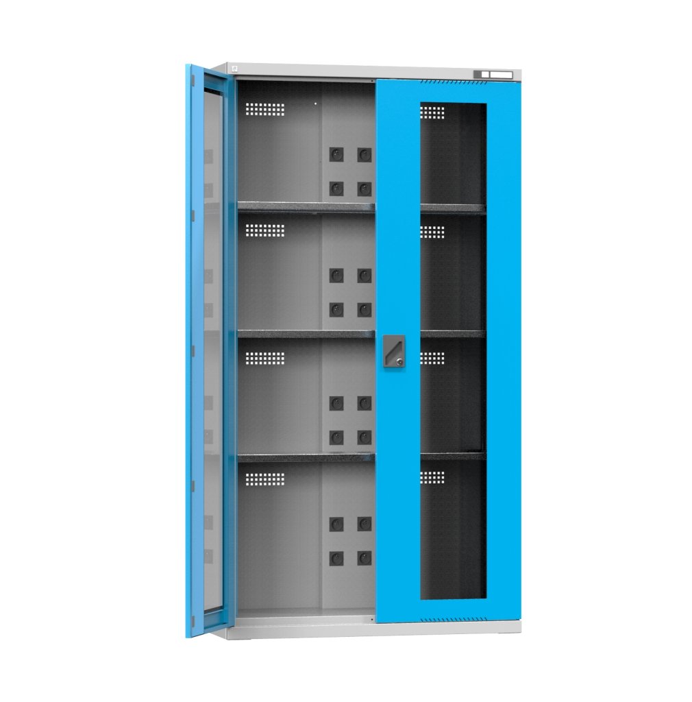 Werkstatt-Ladeschrank NSK2S mit Glastüren, basierend auf dem SK2-Schrankdesign. Der Schrank verfügt über ein integriertes vollständige Beschreibung und Parameter