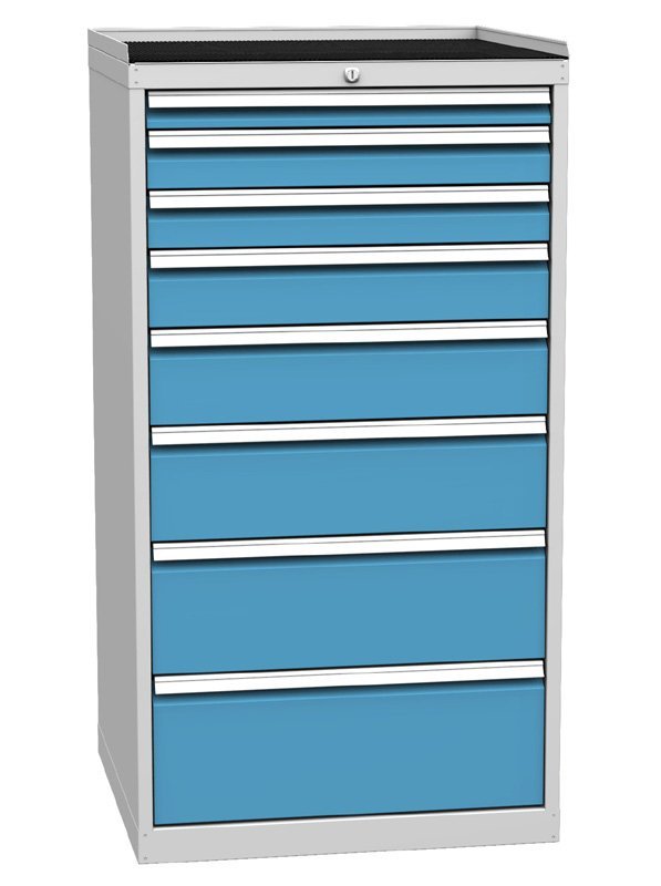 Werkstatt - Schubladenschrank B x H x T 720 x 1350 x 700 mm. Korpusfarben RAL 7035 Lichtgrau.