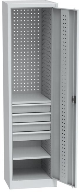 Werkstatt - Universal Schrank DUS_13_D, H x B x T 1950 x 505 x 500 mm, 2x Fachboden, 4x Schublade, Korpusfarbe RAL 7035 Lichtgrau