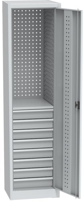 Werkstatt - Universal Schrank DUS_13_E, H x B x T 1950 x 505 x 500 mm, 1x Fachboden, 8x Schublade, Korpusfarbe RAL 7035 vollständige Beschreibung und Parameter