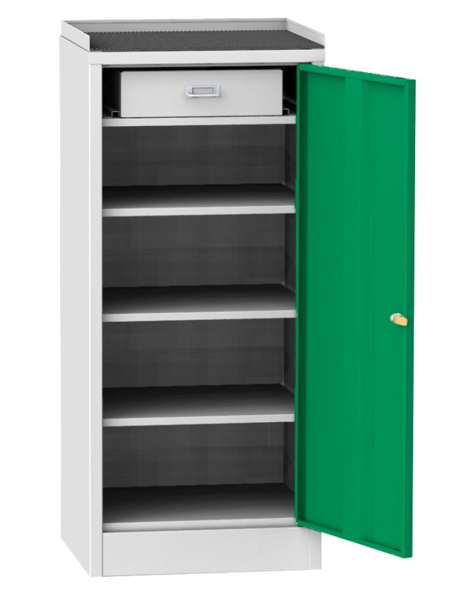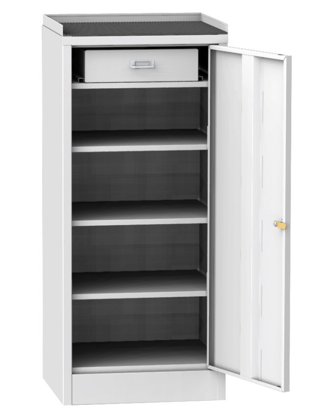 Werkstatt - Werkzeugschrank B x H x T 500 x 1030 x 500 mm. Aufbewahrungsplatte (mit Gummi - Auflage). Korpusfarben RAL 7035 Lichtgrau.