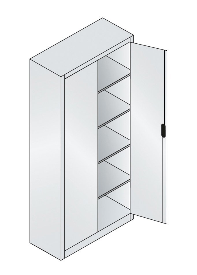 Werkstattschrank, 2 Türen, B x H x T 950 x 1950 x 600 mm, 4 Fachböden, verglaste Türen oder Drahtgittertüren lieferbar. Korpusfarben RAL 7035 Lichtgrau.