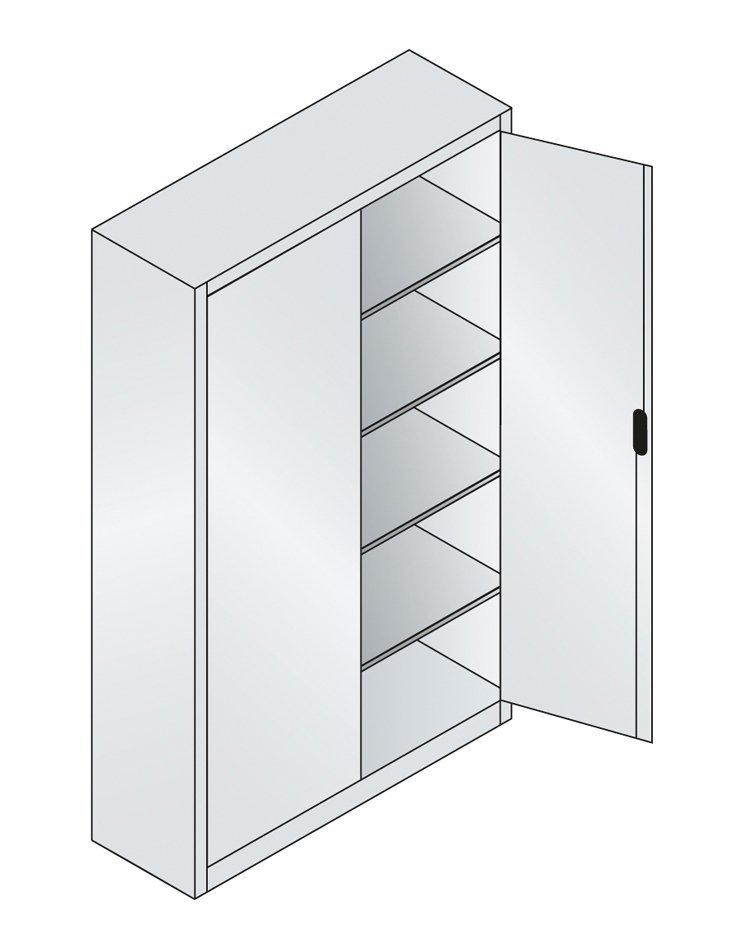 Werkstattschrank, 2 Türen, B x H x T 950 x 1950 x 600 mm, 4 Fachböden, verglaste Türen oder Drahtgittertüren lieferbar. Korpusfarben RAL 7035 Lichtgrau.