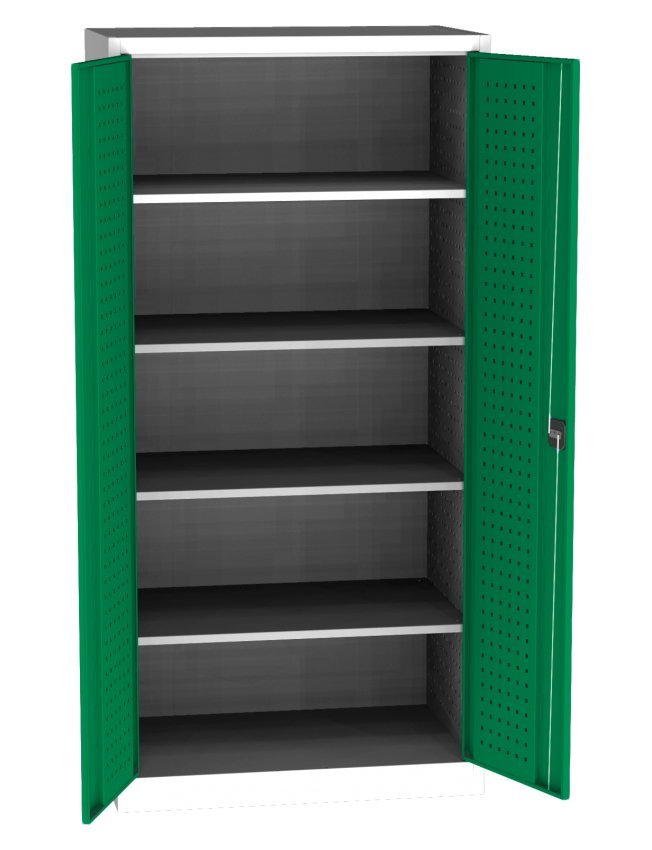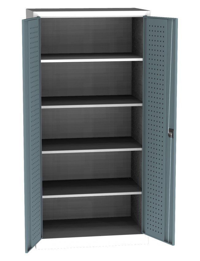 Werkstattschrank, 2 Türen, B x H x T 950 x 1950 x 600 mm, 4 Fachböden, verglaste Türen oder Drahtgittertüren lieferbar. vollständige Beschreibung und Parameter