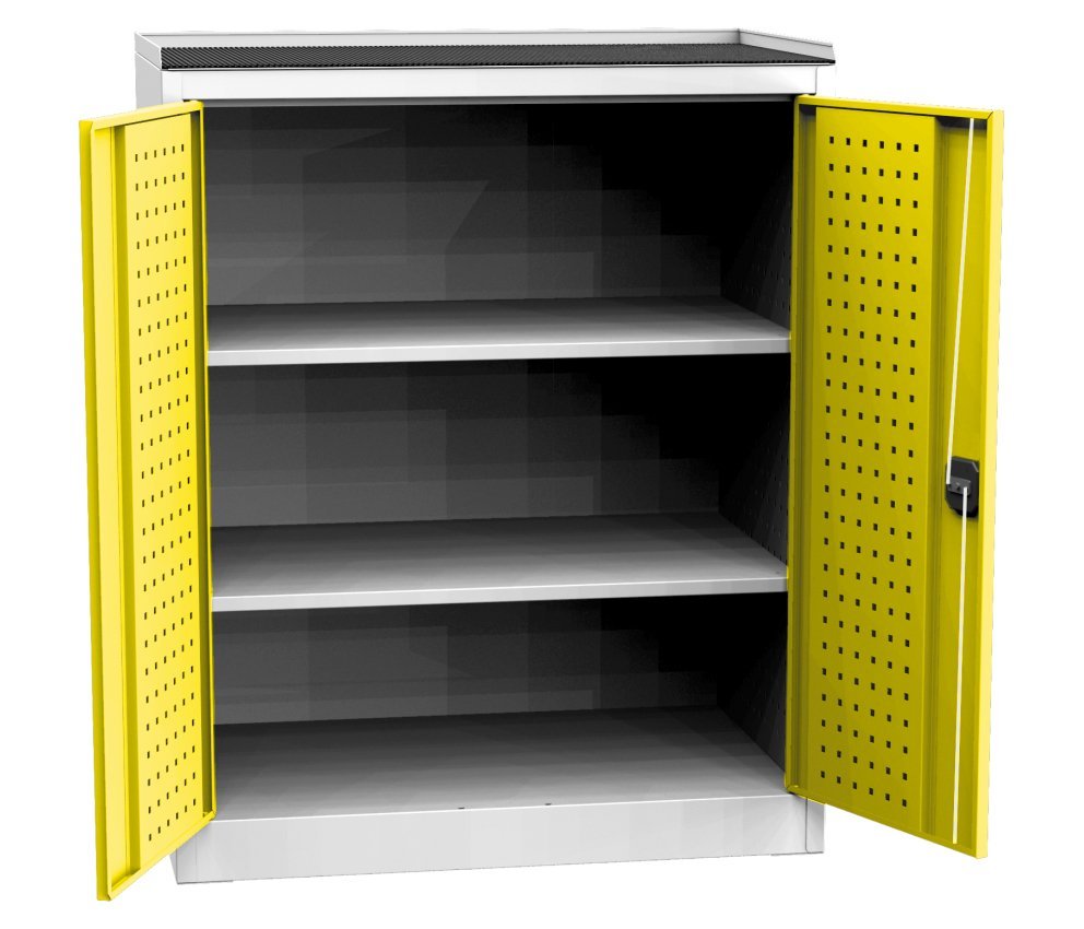 Werkstattschrank, 2 Türen, B x H x T 950 x 1180 x 600 mm, 2 Fachböden, verglaste Türen oder Drahtgittertüren lieferbar. vollständige Beschreibung und Parameter