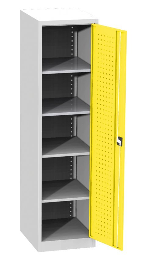 Werkstattschrank, B x H x T 505 x 1950 x 600 mm. Korpusfarben RAL 7035 Lichtgrau.