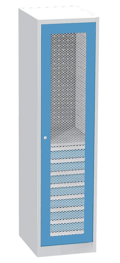 Werkstattschrank mit Drahtgittertüren, B x H x T 505 x 1950 x 600 mm. Korpusfarben RAL 7035 Lichtgrau. vollständige Beschreibung und Parameter