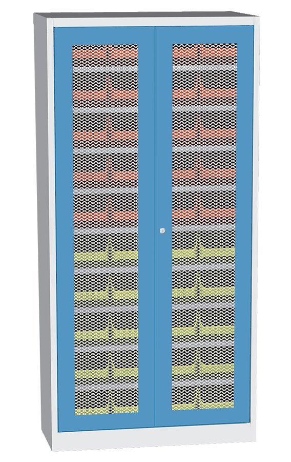Werkstattschrank, 2 Türen,  B x H x T  950 x 1950 x 400 mm, 9 Fachböden, mit Drahtgittertüren. vollständige Beschreibung und Parameter