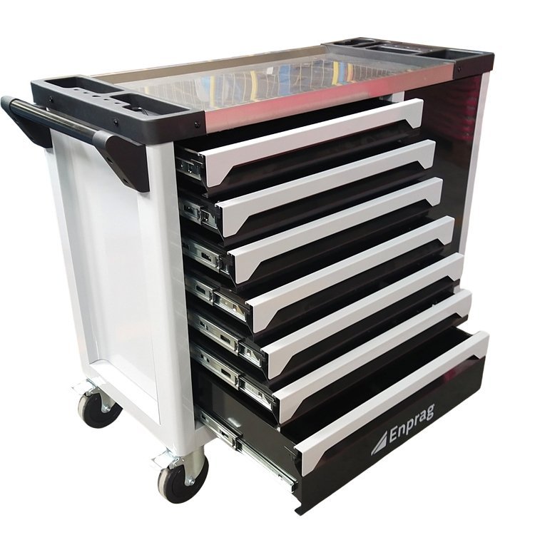 Werkstatt-Servicewagen - 7x Schublade. Höhe 951 x Breite 954 x Tiefe 459 mm. 2 Lenkrollen und 2 Bockrollen, mit Handgriff. Farbe vollständige Beschreibung und Parameter