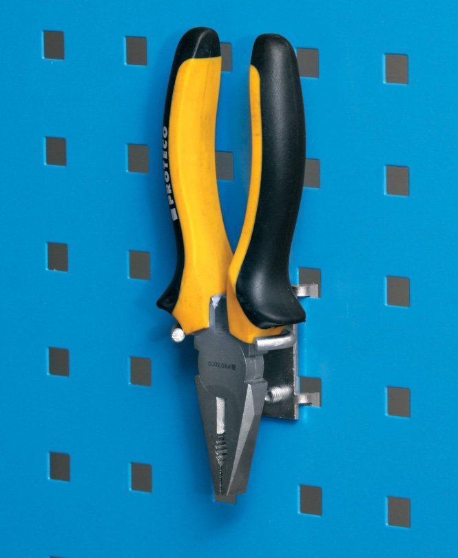 Die Kunststoffhalterungen werden aus stoßfestem ABS Kunststoff hergestellt und sind in den Trägern bzw. Werkzeugrahmen mithilfe von zwei Sicherungen in der gewünschten Position fixiert. Ohne Werkzeug, ohne Schrauben!